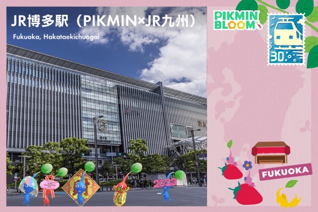 Throughout all seven prefectures of the region (Fukuoka, Saga, Nagasaki, Kumamoto, Kagoshima, Miyazaki, and Ōita), there were 61 train stations that became Special Spots in Pikmin Bloom. When swiped, players would receive 10 regular white nectar and an exclusive postcard, a different design for each prefecture. In addition, treasures in the form of a digital stamp rally could be collected by doing a GPS Check-in through the JR Kyushu app.
